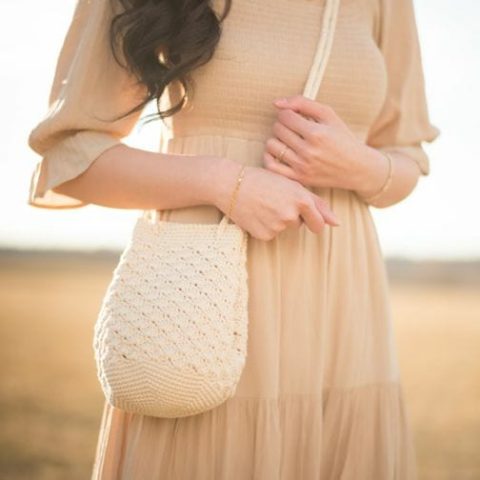 Create a stylish drawstring bag inspired by the Regency era with the beautiful shell stitch in crochet! This bag exudes both elegance and romance, and can be easily completed, making it a great gift to give.