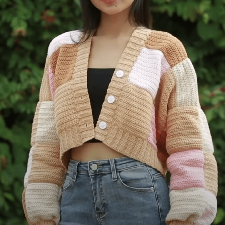 This type of crochet sweater cardigan pattern incorporates different crochet stitches and colors to create a patchwork effect that is reminiscent of quilting.
