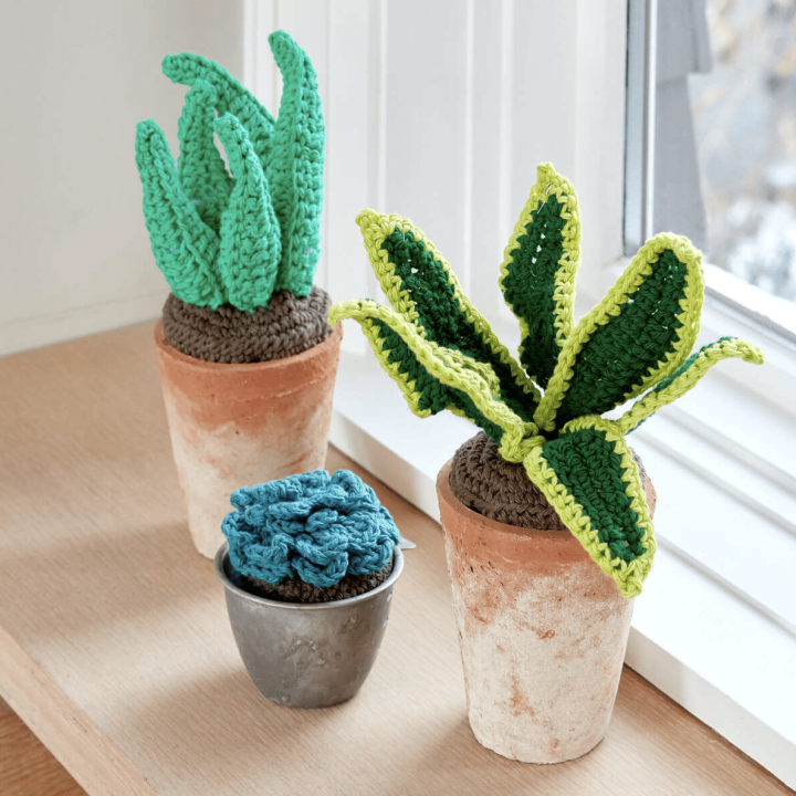 If you are up for a challenge, crochet this gorgeous crochet plant collection that features a variety of different crocheted plants and pot.