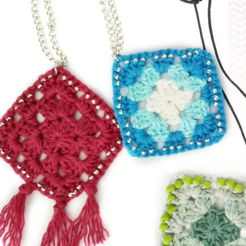 Learn how to crochet a granny square necklace with this free pattern. Perfect for newer crocheters to make.