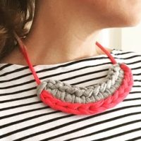 Use T-shirt yarn to create a crocheted necklace statement piece that goes great with most outfits.