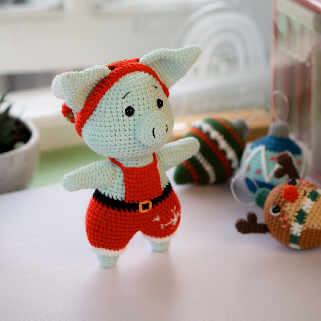 There’s something magical about crocheting a little friend for the holidays. Pumpy Claus, the Christmas version of my beloved Pumpy Pig, was born from that quiet joy — soft yarn, gentle stitches, and the comforting hum of Christmas tunes in the background. With his round belly, red Santa overalls, and tiny hat tipped with a pom-pom, he carries the warmth of handmade cheer into every corner of your home.